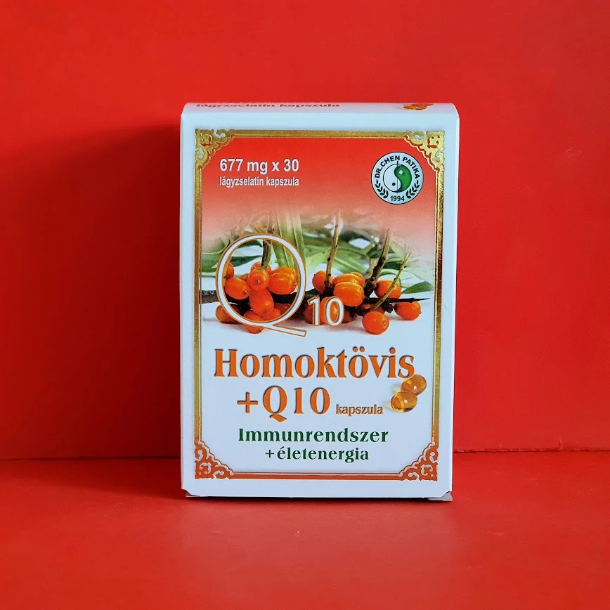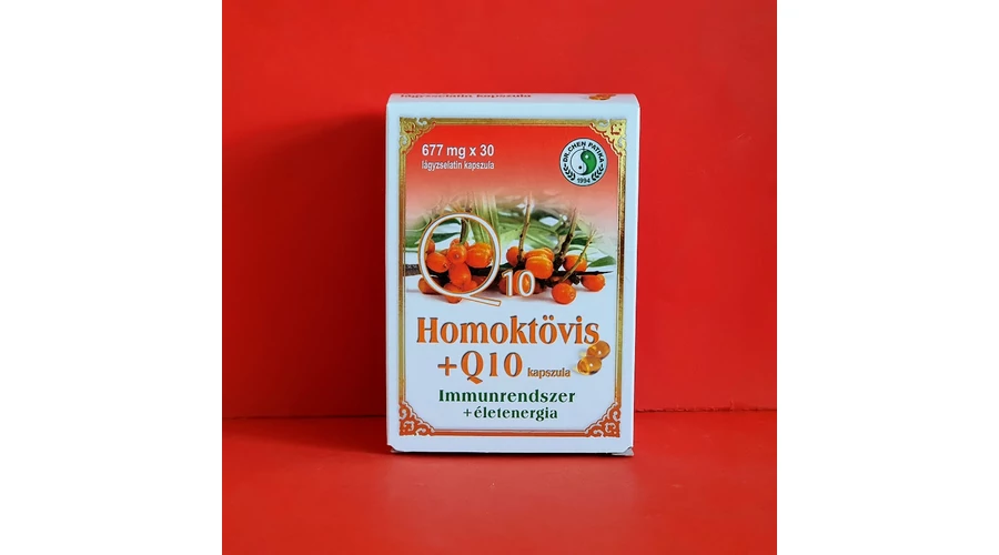 Összetevők: homoktövis gyümölcshús olaj, lenmagolaj, zselatin, nedvesítőszer: glicerin, Koenzim Q10, E-vitamin (d-alfa-tokoferol)