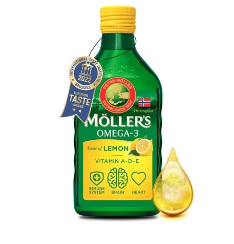 Möller’s Omega-3 tőkehalmáj-olaj étrend-kiegészítő A-,-D – és E-vitaminnal, citrom